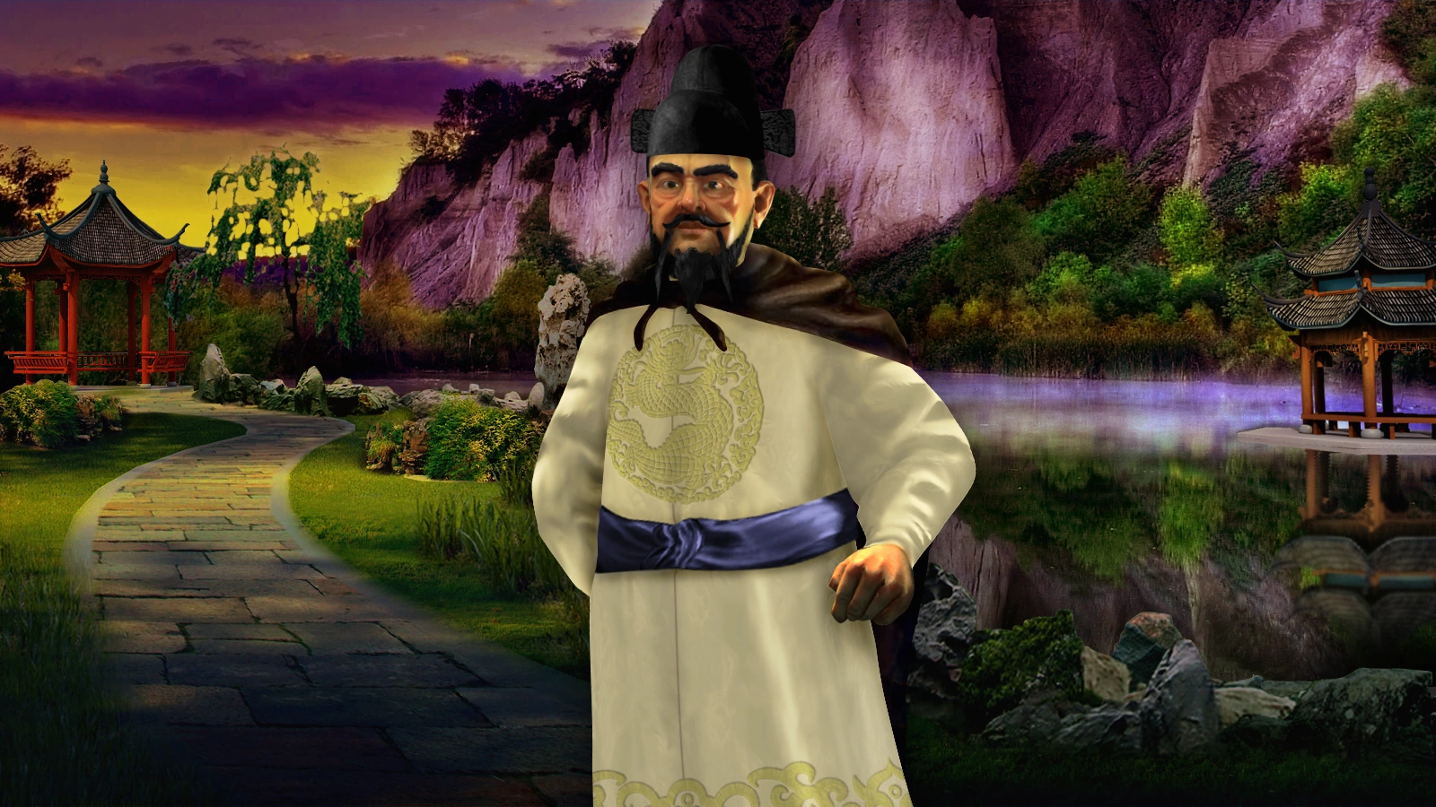 "Eternal happiness to you, Yongle, great Emperor of the Ming. Overcoming the treachery of your nephew, the Jianwen Emperor, you launched a campaign to seize China and restore it to greatness. Guided by your loyal and ever-watchful Scholar-Eunuchs, your imperial rule oversaw immeasurable splendour: the construction of great wonders, the advancement of deep knowledge, and the projection of China's power through the legendary Seven Voyages of Zhu Di. At no other time before would China be so prosperous. Heavenly emperor, the legends of China's great accomplishments threaten to fade into memory. Can you be a patron to scholars and explorers alike? Can you show the world that China is both powerful and wise? Can you build a civilization that can stand the test of time?"