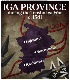 The Iga Republic (Iga Sokoku Ikki) was a kind of peasant's republic, established by the ninja clans of Japan's Iga Province during the 16th Century. Early in the Muromachi period, the region successfully broke away from the wider feudal system and was organized independently under the Momochi, Hattori and Fujibayashi clans. In 1579, Oda Nobukatsu attempted to invade Iga to win favor with his father; the ninja ambushed Nobukatsu's army as they attempted to establish a foothold, and the invasion was successfully resisted. Two years later, Oda Nobunaga would invade the province from all directions and finally bring an end to the republic.