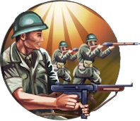 The Infantry is armed with modern automatic weapons, grenades and the cunning and mobility necessary to survive an increasingly mechanized battlefield. It's stronger than its predecessor, the Rifleman (or Great War Infantry). Modern combat is increasingly complex, and on its own an Infantry unit is vulnerable to air, artillery and tank attacks (although its decent strength allows it to withstand quite some beating). When possible, Infantry should be supported by artillery, tanks, and air (or anti-air) units.
