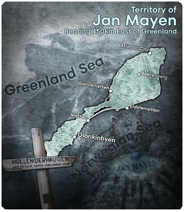 Jan Mayen is a Norway-controlled archipelago in the Arctic Ocean, approximately 450 kilometers east of Greenland. First discovered by the Dutch in the 17th century, the island spent much of its existence as a whaling outpost for European nations before being granted to Norway after the First World War. Jan Mayen is a volcanic island split distinctly into two sections; Nord-Jan in the northeast, and smaller Sør-jan in the southwest. A distinct population of polar bears are found on the island, though their numbers have been diminished through human activity.
