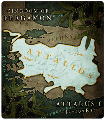 Hail, Attalus Soter, first of the Attalid dynasty! You rule Pergamon, greatest of the Greek kingdoms of Ionia, and hegemon of Anatolia. In refusing to bow before the Galatian terror which had plagued your people for generations, you liberated the cities of Ionia from their plight and became known across the world as a saviour of all Greeks. With a reputation as an excellent general and loyal ally, you were respected by your friends and rightly feared by your foes. During frequent wars with the renmants of the great Alexander's once mighty empire, your tactical prowess ensured Pergamon emerged from the fire as a great nation and regional power!