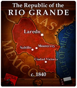 The Republic of the Rio Grande was a state created in opposition to Santa Anna's new Centralist government in Mexico. The country consisted of the states Coahuila, Nuevo León, and Tamaulipas, and the Capital of Laredo. The country didn't even last for a year, and the majority of the soldiers in the Army were Texan and Mexican volunteers, and Caddo Indians. The country was disbanded after their defeat at the Battle of Saltillo, because the majority of the army were bribed by the Mexican Army or were Mexican Spies.
