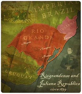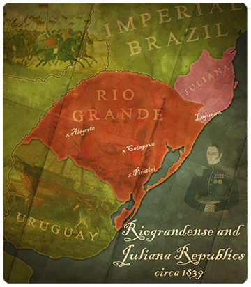 Oh honourable Bento Gonçalves, you have been provided with a second opportunity. While it may go against every instinct of your being to once again rebel against your Brazil and cast aside your monarchical principles, the chance to leave a greater stamp of authority on the Riograndense Republic than the first time has been presented. You no longer need fear the cell, and to lead this new country would see many of your fellow man avoid the prospect of returning to slavery. Can you craft a new sovereign nation from nothing but the spirit of liberty and your grit and determination? Will you build a civilization that can stand the test of time?"