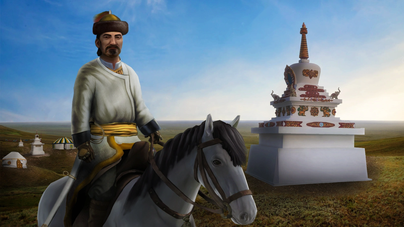 Powerful Ayuka Khan, you have the opportunity to once again bring your Khanate to drink under the light of prosperity. Stand in proud independence, take your great golden sword and slice through would-be subjugators. Will you lead your people to a new age of glory? Can you build a civilization that can stand the test of time?